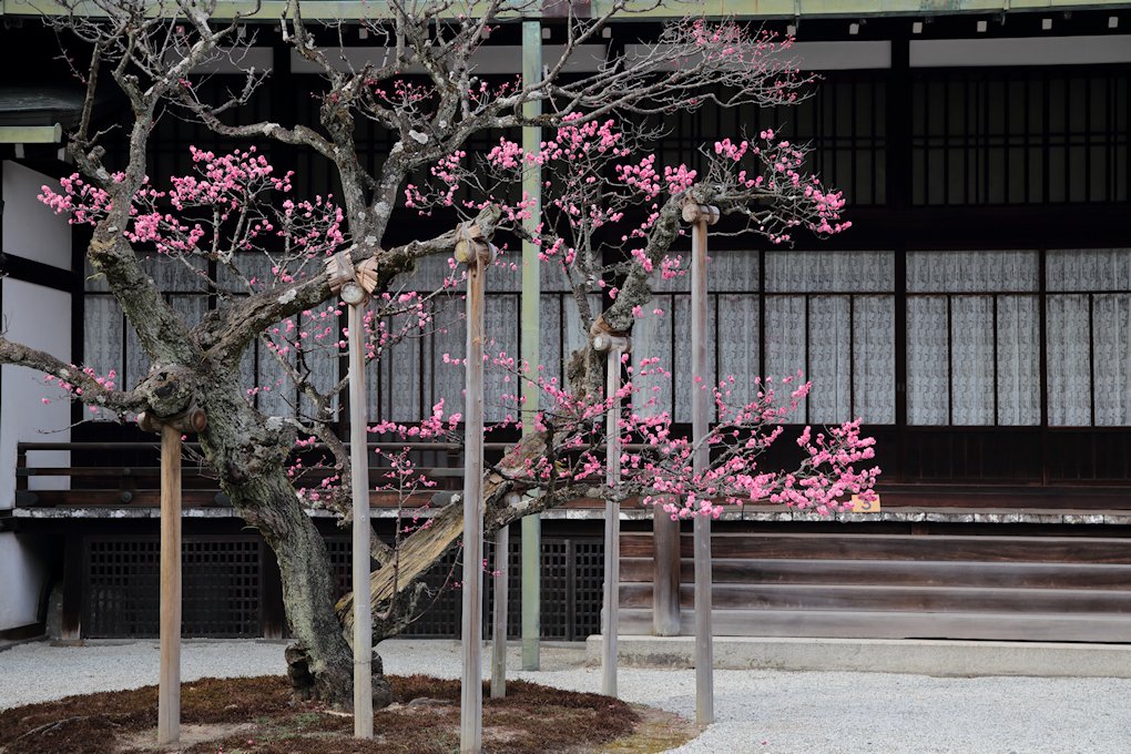 蘇鉄の養生は冬の風物詩。桂離宮、仙洞御所などでもおなじみの風景です。3月9日は冬といえないけれど。