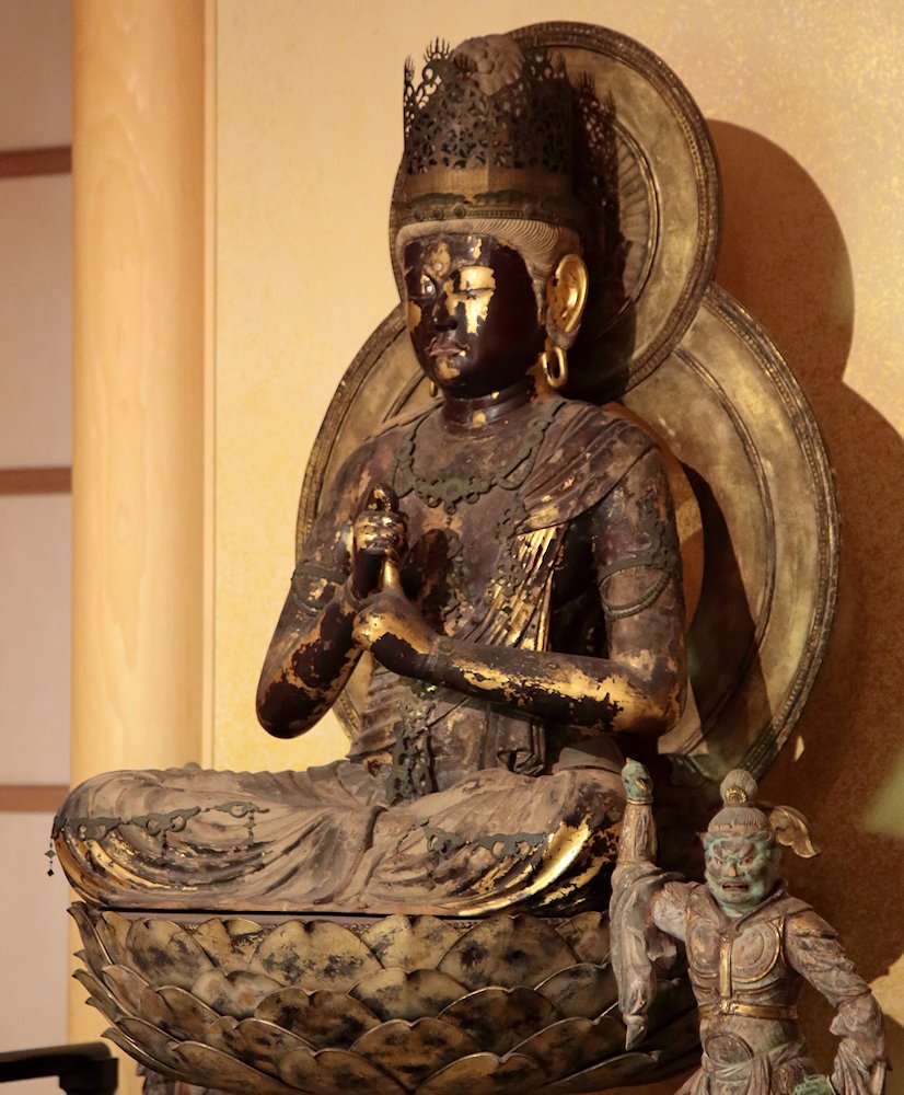 大日如来はサンスクリット語の「この世のものすべてを照らす者」との意をもち、密教最高位の仏と