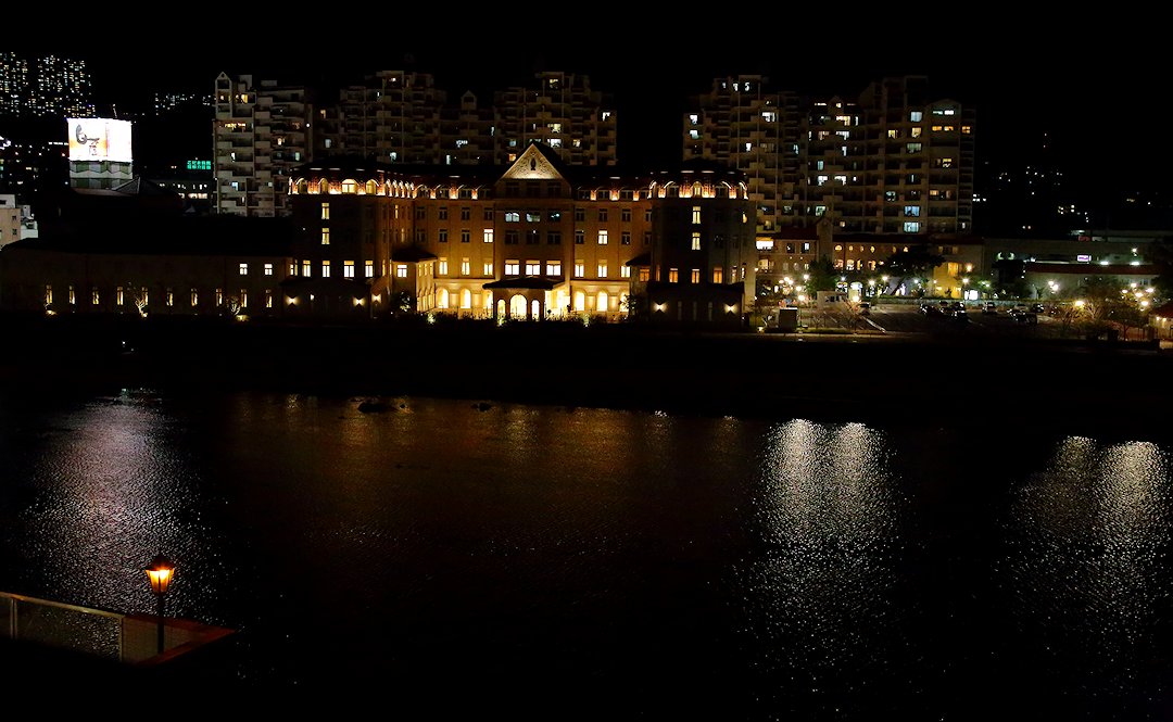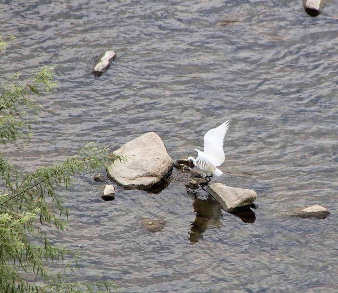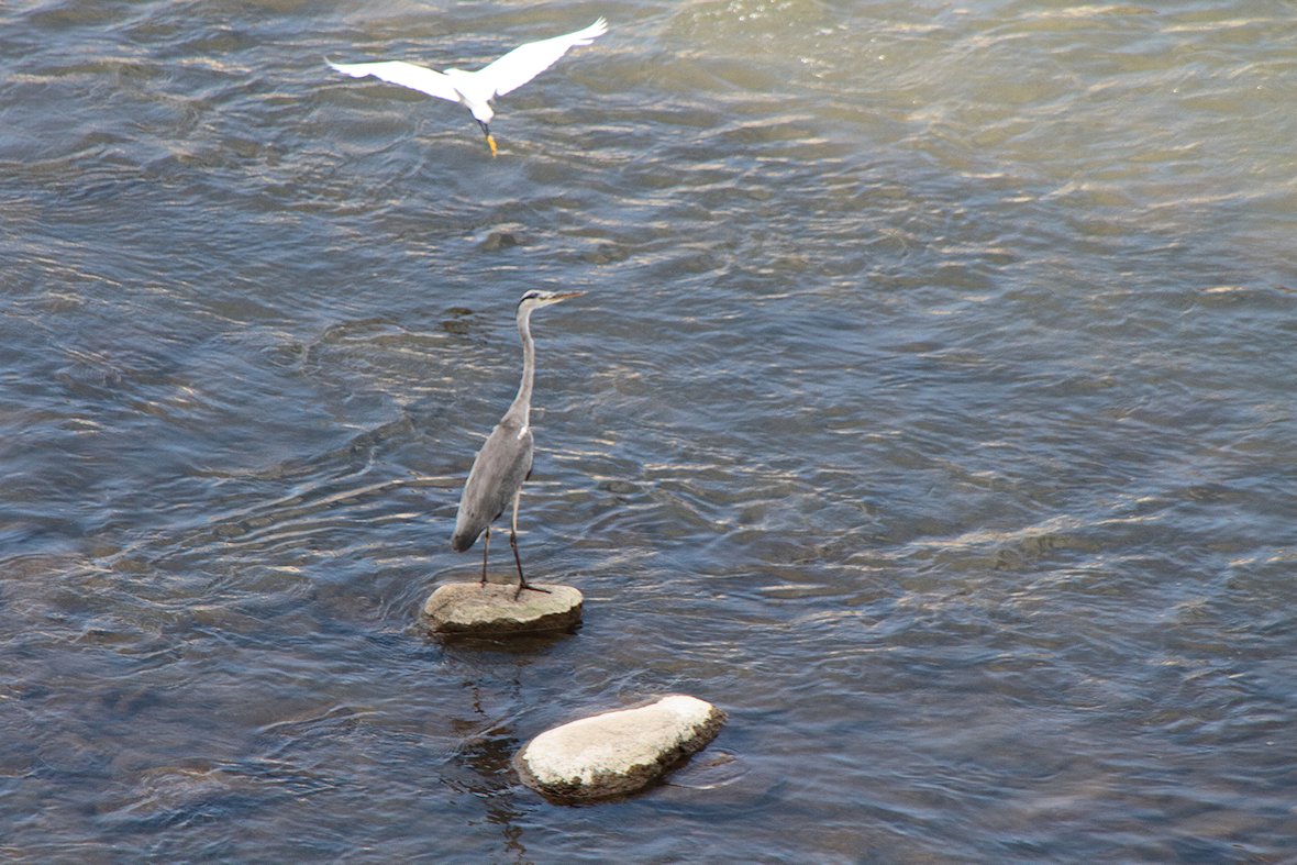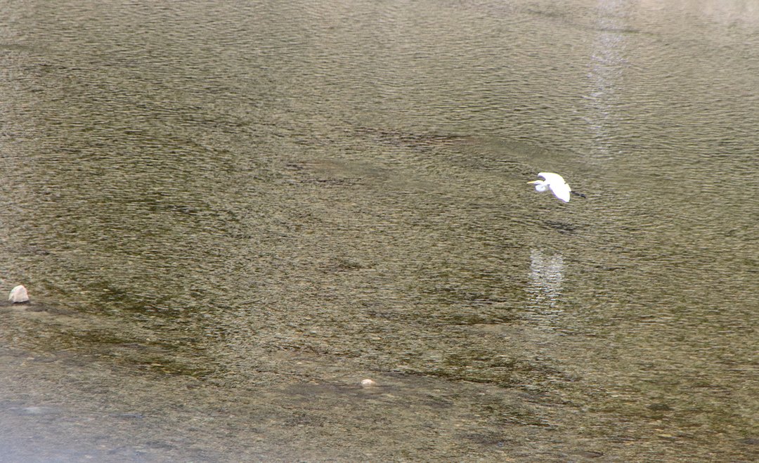 左下にサギ