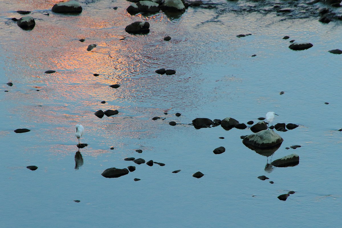 右下にサギが2羽